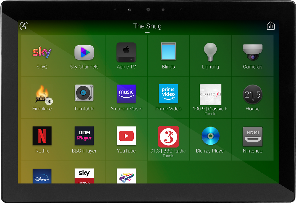 Touch screens on your walls let you control everything you need to with a single tap. Change the temperature, put a film on, listen to the radio, light the fire, check the cameras, switch the lights off or turn the garden sprinklers on.